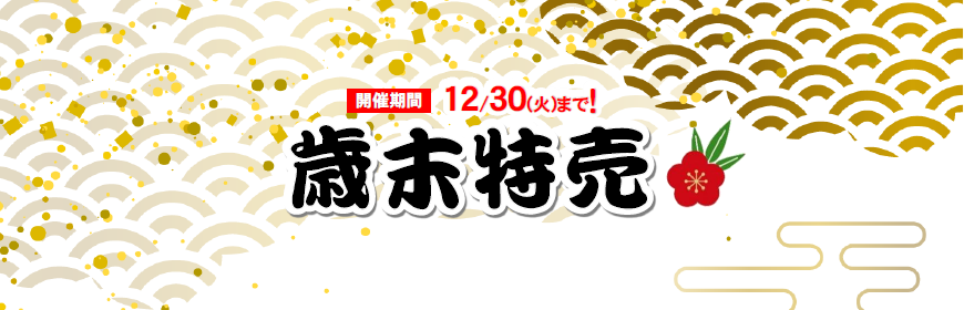 開催期間:12月30日(火)まで 調味料から冷凍食品まで150品以上の商品を お買い得価格にてご用意いたしました! スタッフ一同皆様のご来店お待ちしております。 (チラシをクリックすると拡大画像をご覧いただけます)